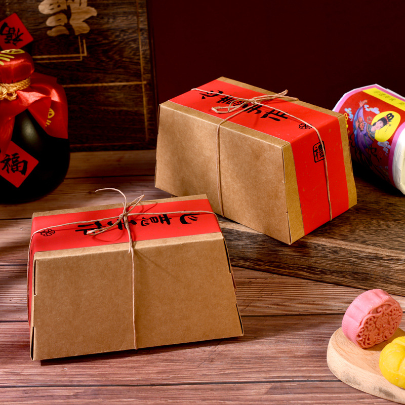 2025中秋の包装箱伝統的な古い月餅箱復古クラフト紙500グラム1斤の手提げ包装礼箱