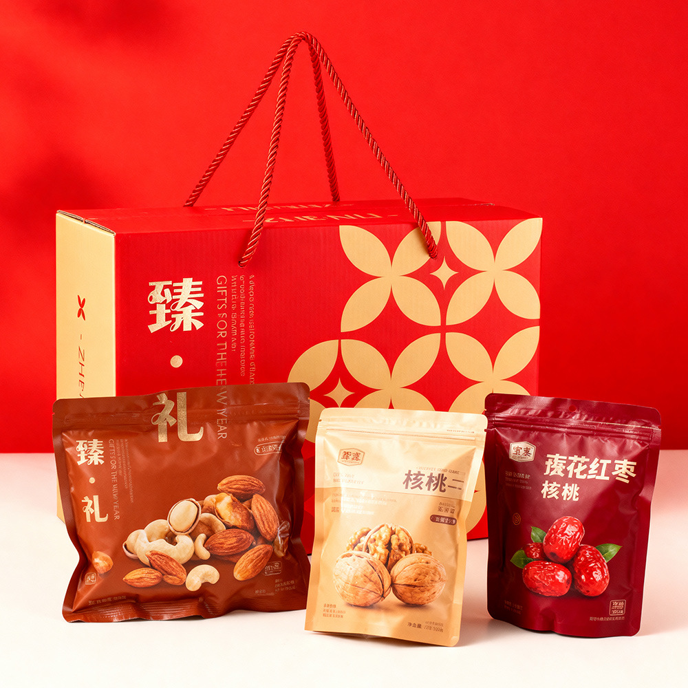 春節年物包装箱ギフトボックス在庫あり新年ギフトボックス雪花餅ナッツ特産品年味手提げギフトボックス