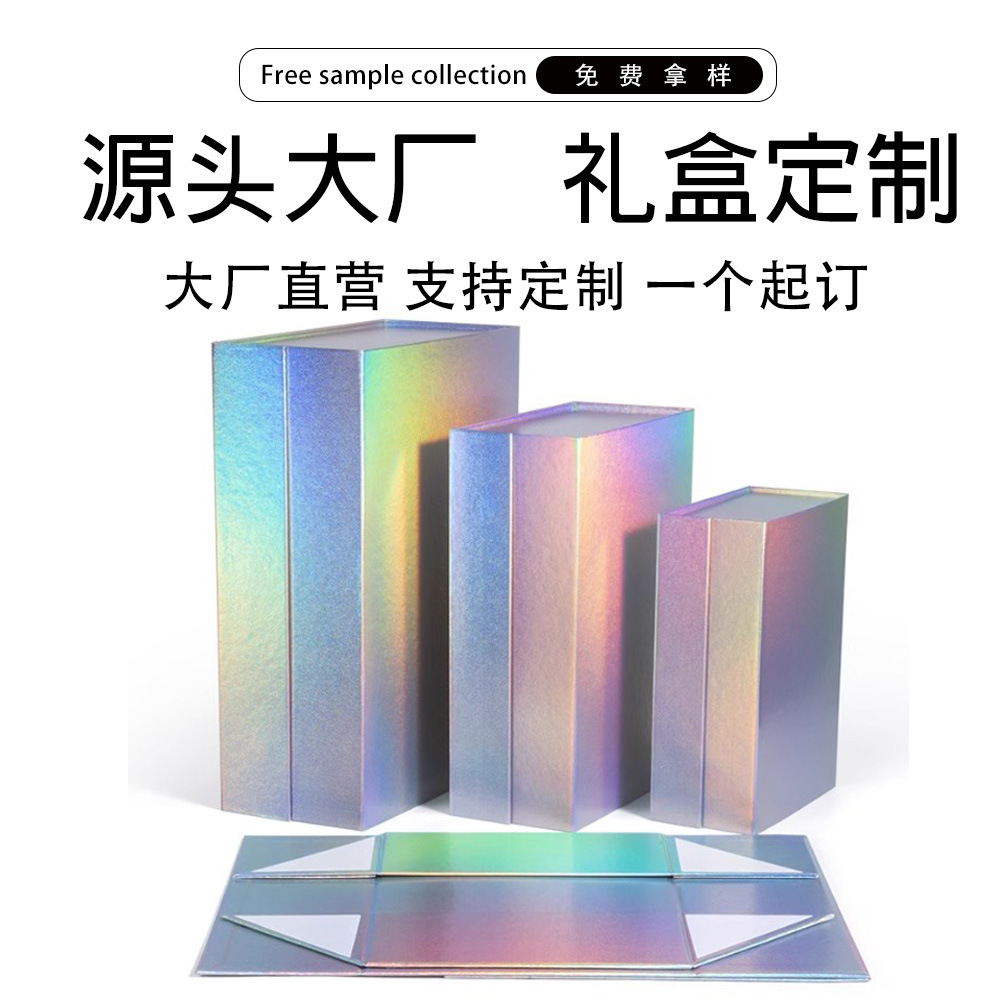 T0 クロスボーダーレーザーカラフルなブック型ギフトボックス包装箱シルバー段ボール箱美容スキンケア製品折りたたみフリップボックス