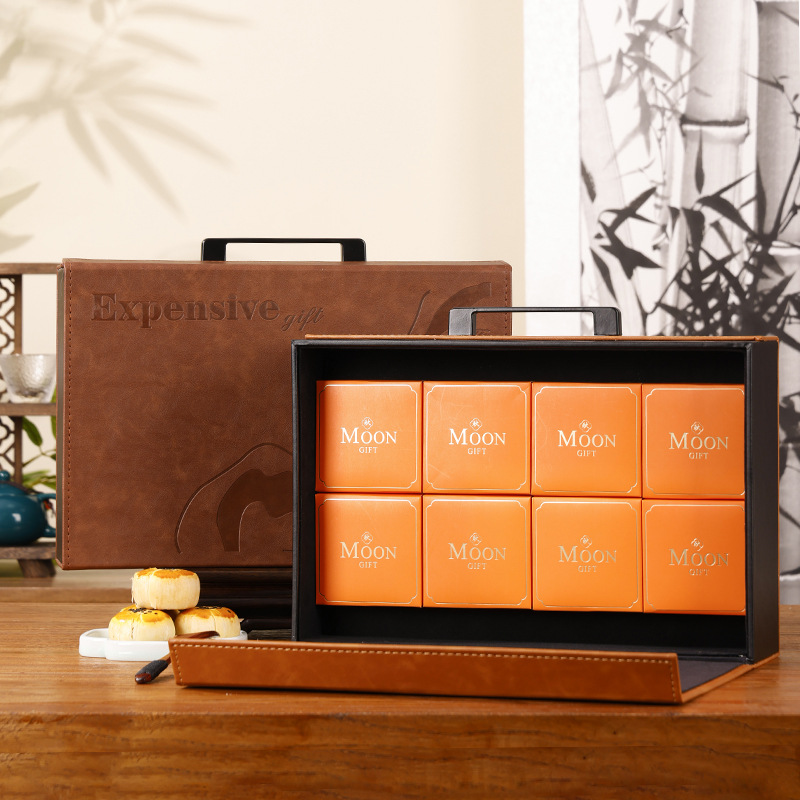 2025 中秋月餅ギフトボックス独立包装月餅ボックスハイエンドフリップトップポータブルレザー中秋空箱在庫あり