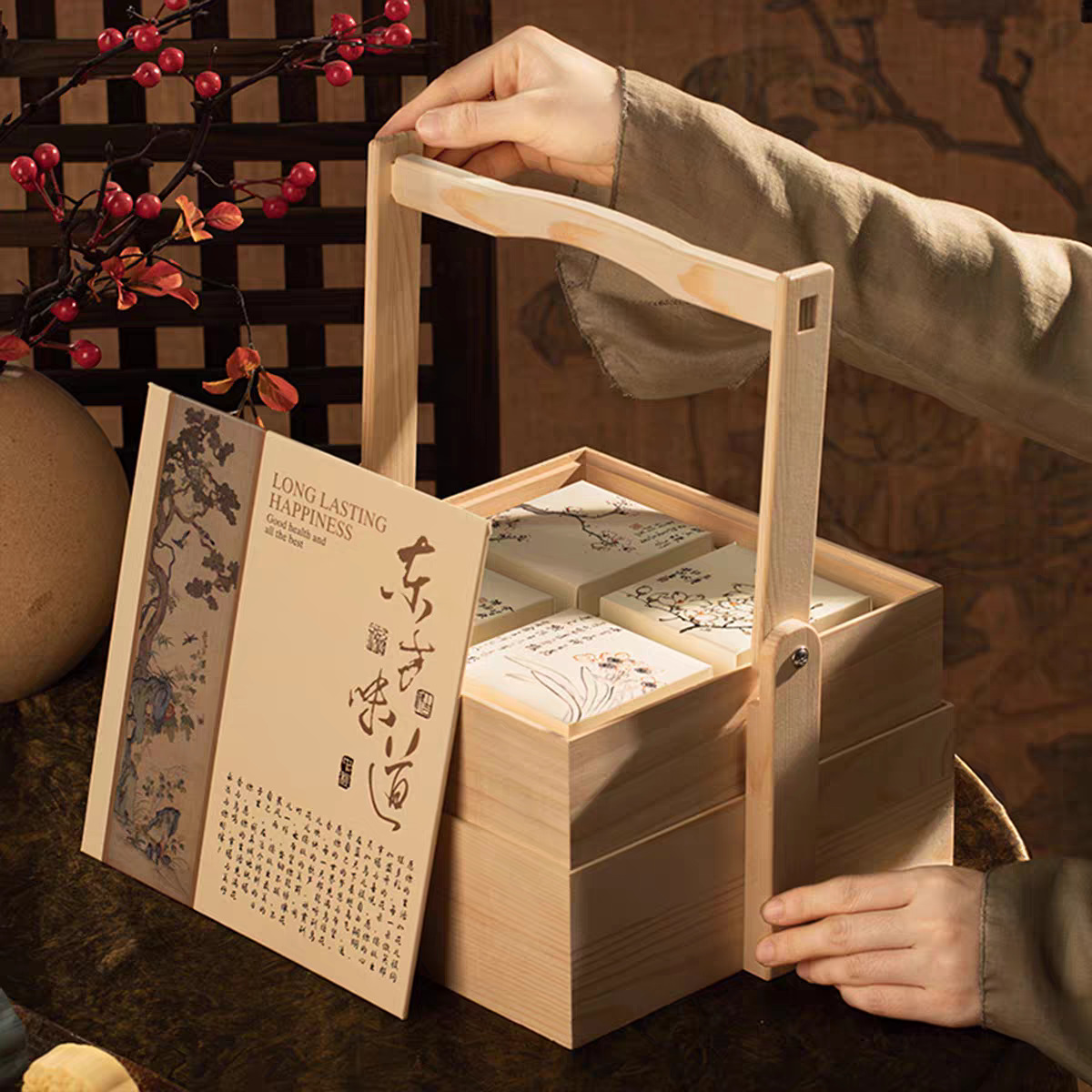 木製包装箱 高級ギフトボックス ナッツ菓子ギフトボックス 中秋節月餅包装箱 茶葉包装箱
