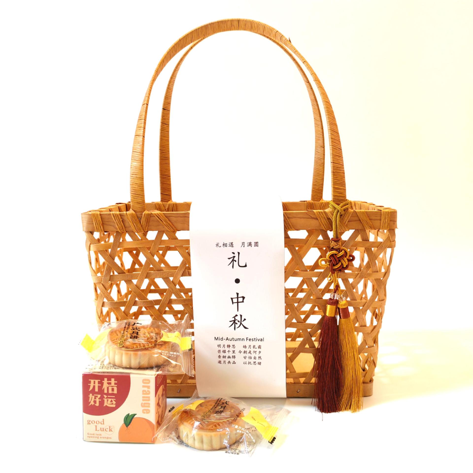 メーカー直送、送料無料、大型クラシック中秋節ギフトバスケット、月餅ギフトボックス、お土産、竹編みバッグ、ハンドバッグ