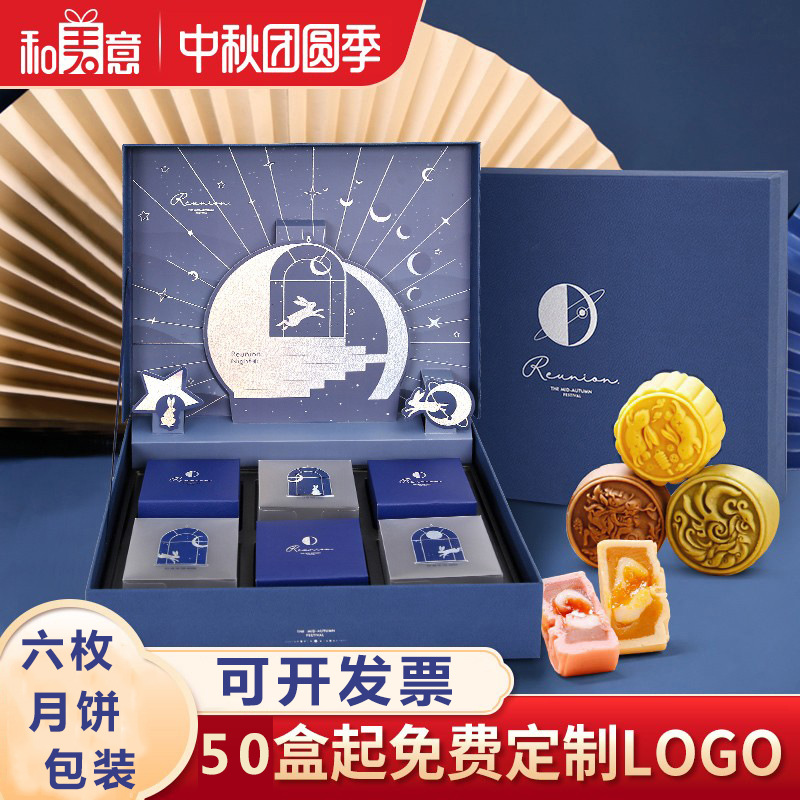 2025新型中秋節礼箱手提げ月餅包装箱6粒流心氷皮卵黄ショートニング箱空箱