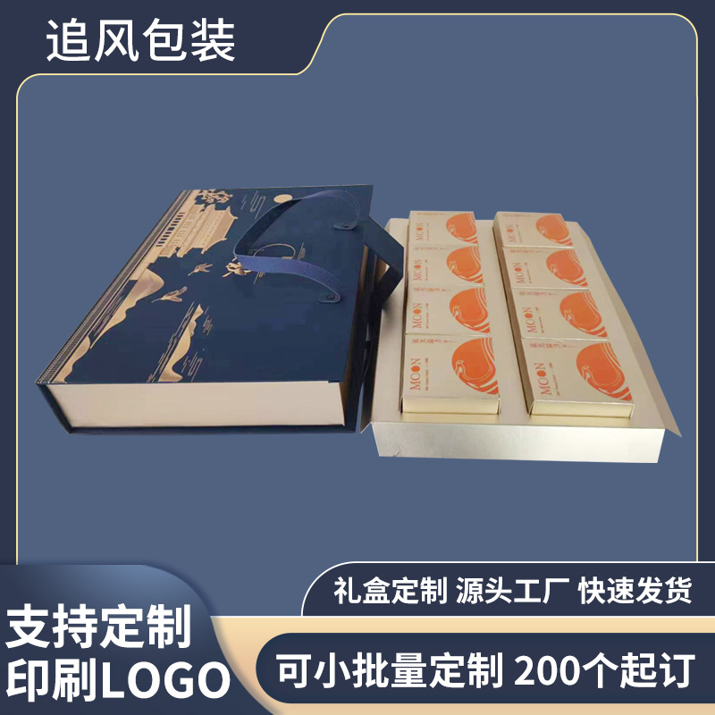 ハイエンド中秋月餅ギフトボックス天地蓋書型手提げマグネット月餅包装ギフトボックス4個入り空箱