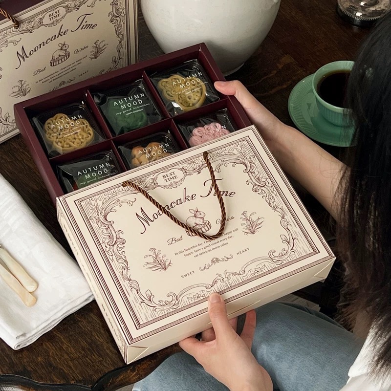 月餅ギフトボックス2025年流行9格ギフトボックス卵黄餅焼き菓子緑豆餅ギフト中秋節