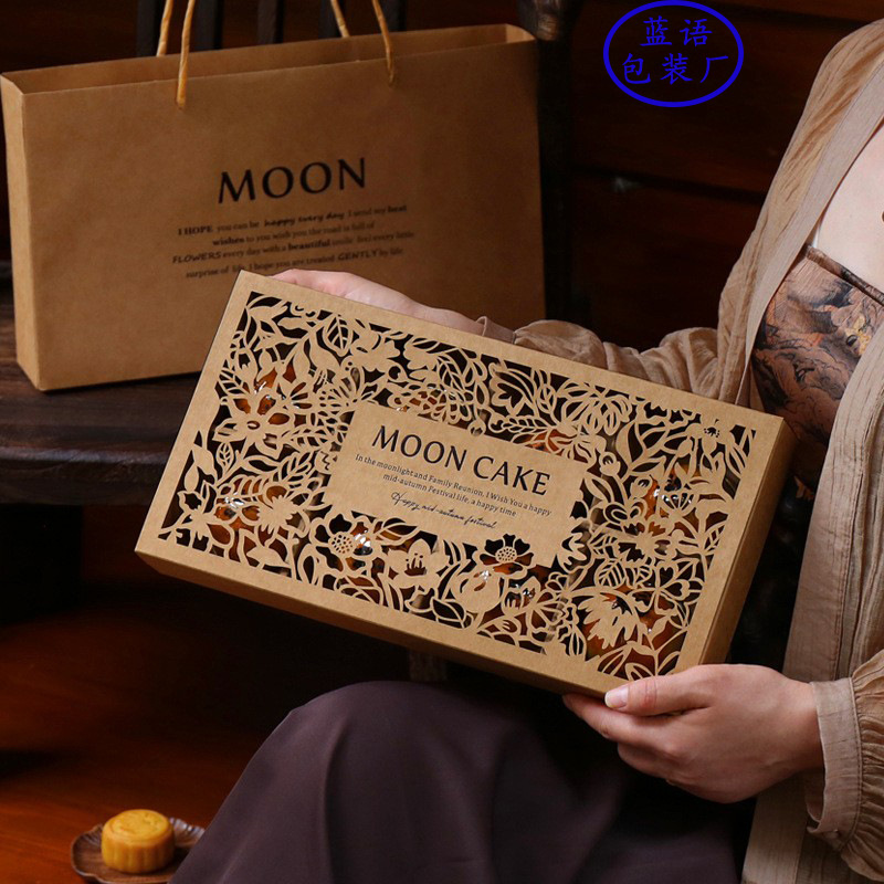 中秋節月餅ギフトボックス 高級中空デザイン 6個/8個入り 手提げ式月餅ギフトボックス 空箱