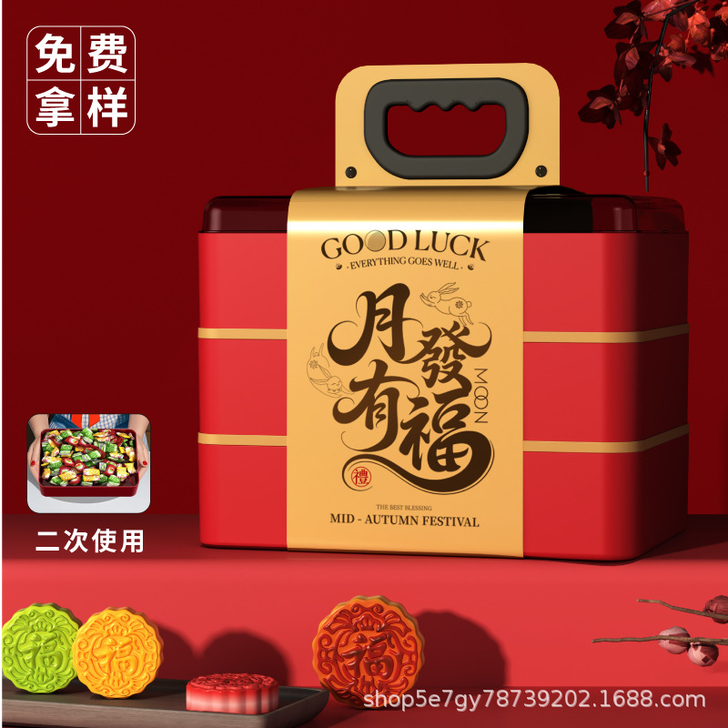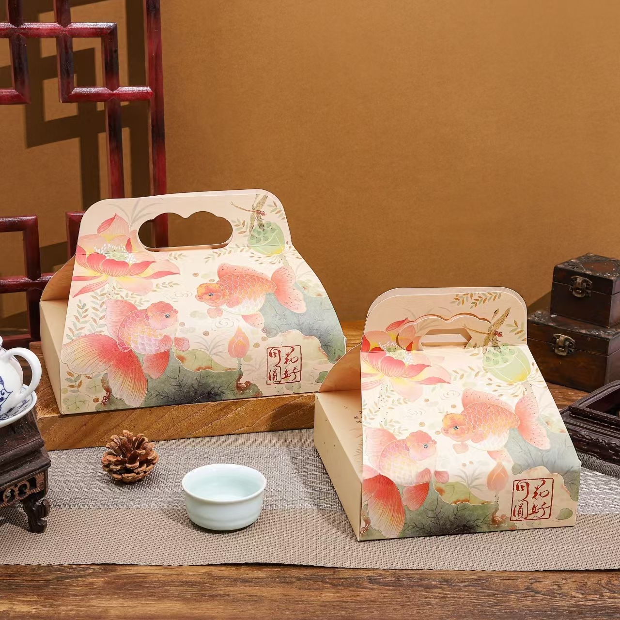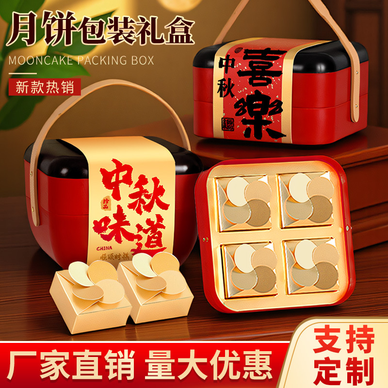 2024中秋礼箱高級感抜き団欒節月餅手提げ箱氷皮月餅卵黄ショートニング箱