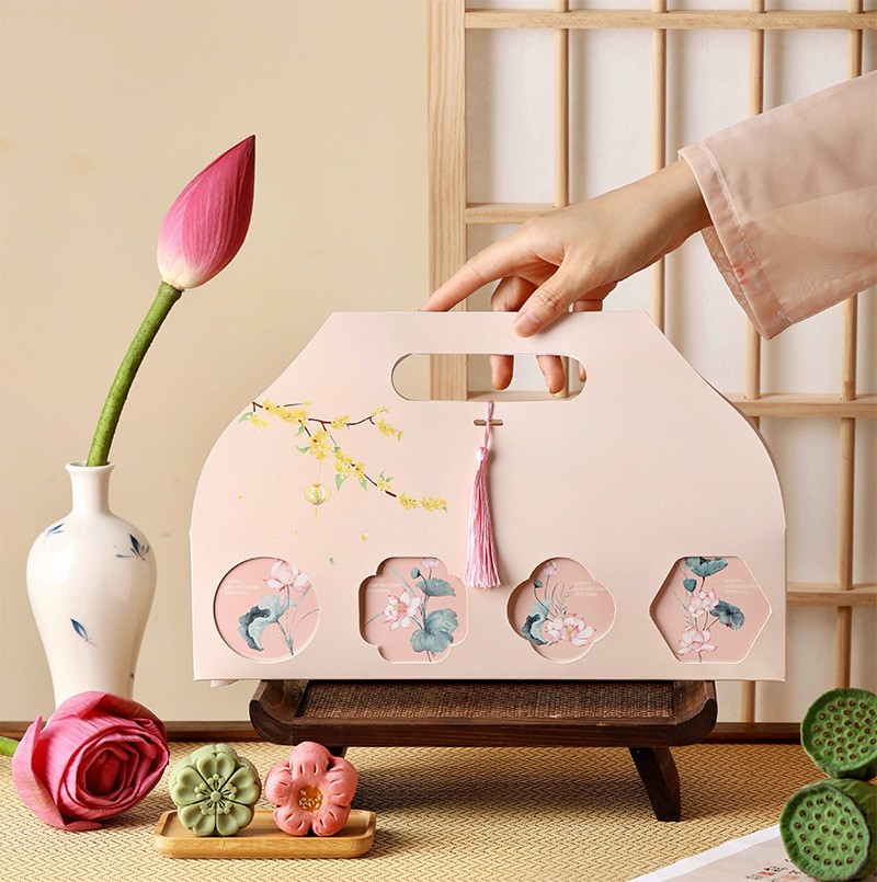 2025 新 4 ピース月餅包装箱中秋節ギフトボックスハンドボックス卵黄クリスプ月餅ギフトボックス