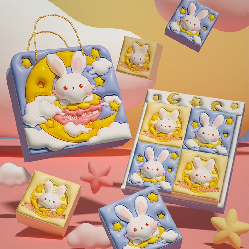 2024 中秋節ベイクド月餅包装箱漫画立体ファットスタイル卵黄クリスプ 4 個ポータブルギフトボックス 125 グラム