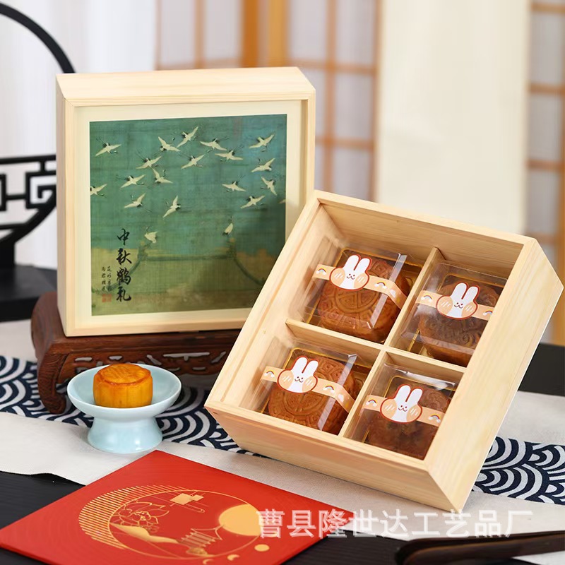 2024新型木製月餅プレゼント包装箱中国式氷皮月餅菓子収納箱多規格ギフトボックス