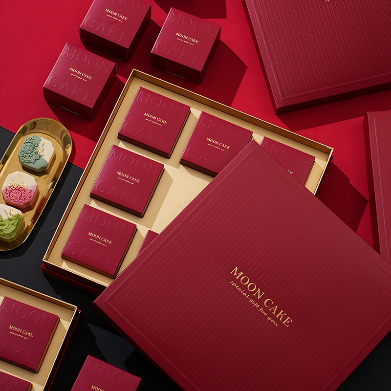 小紅の本の爆発の月餅の箱は金の高級な卵黄のパイの月餅の包装箱にアイロンをかけます。