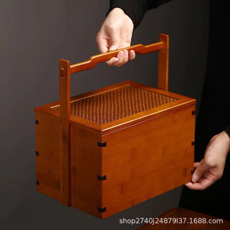 新中国式中秋節月餅箱手提げ多機能カップ茶葉収納箱実木月餅プレゼント包装箱