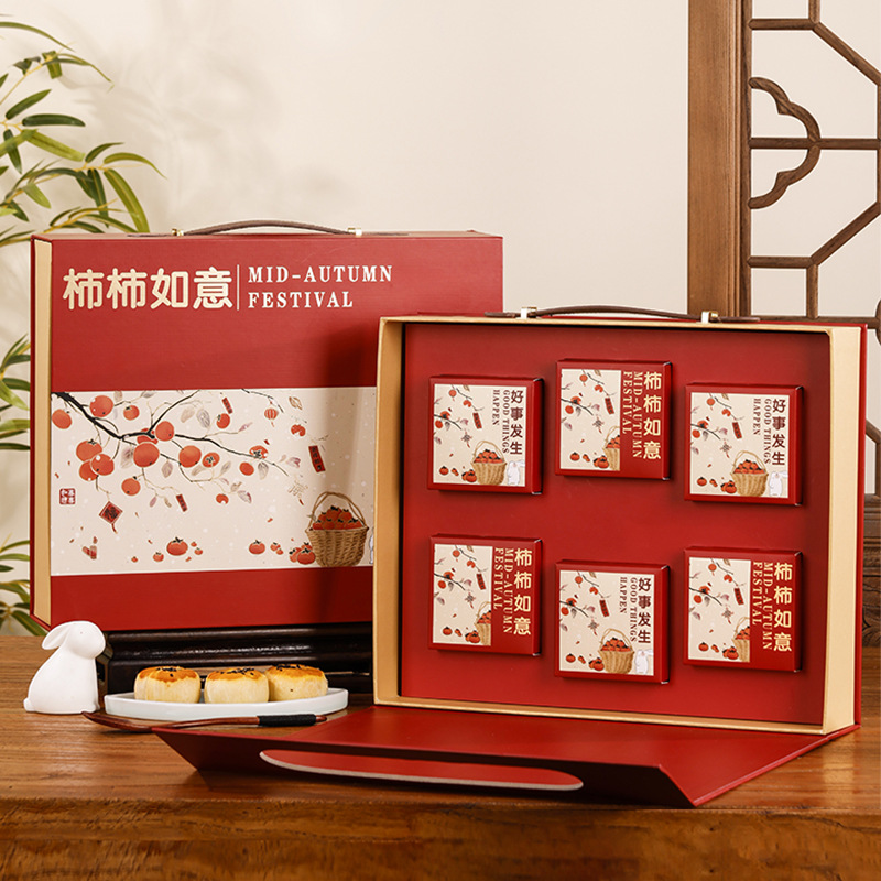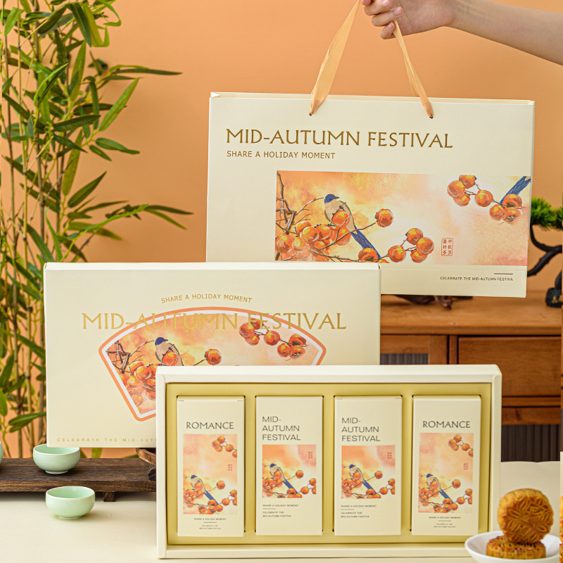 2025年新作中空オレンジグッド柿生4個入り卵黄クリスピー氷皮月餅ベーキング包装箱