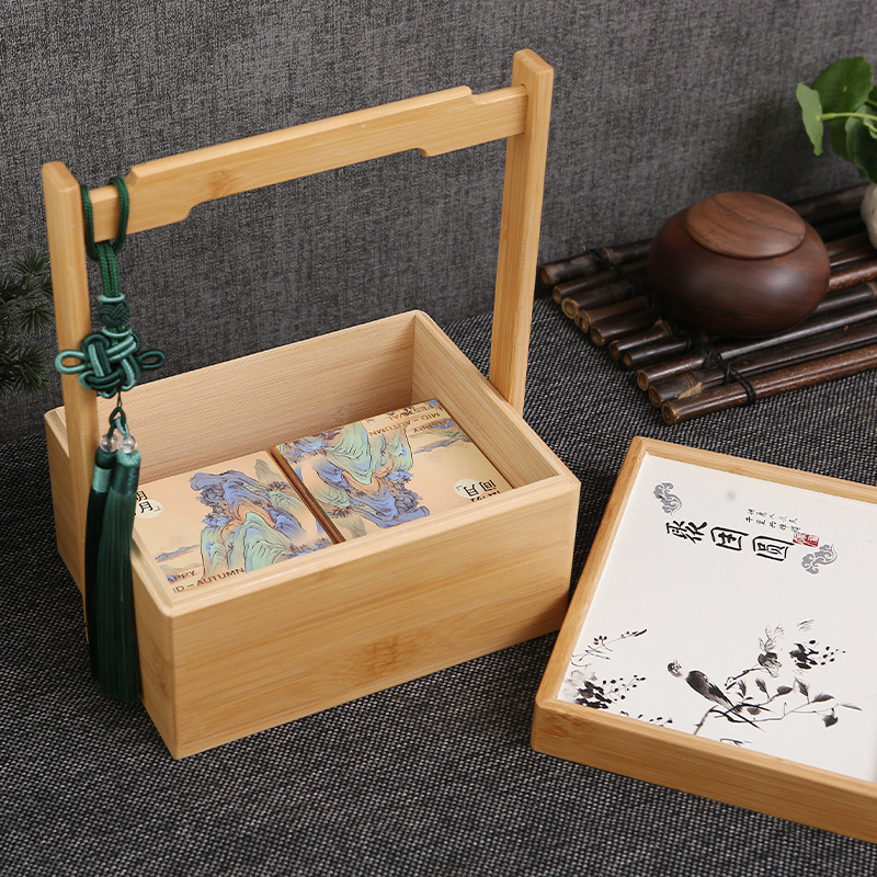 竹の木の中秋節の月餅の箱の手持ち式の菓子のお土産の収納のギフトボックスのお土産のお茶のギフトボックス