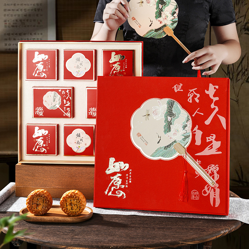 新しい商品の月餅の手提げ箱の卵黄のショートニングの心の月餅の包装箱の扇子の贈り物の高級な贈り物の箱の卸売り