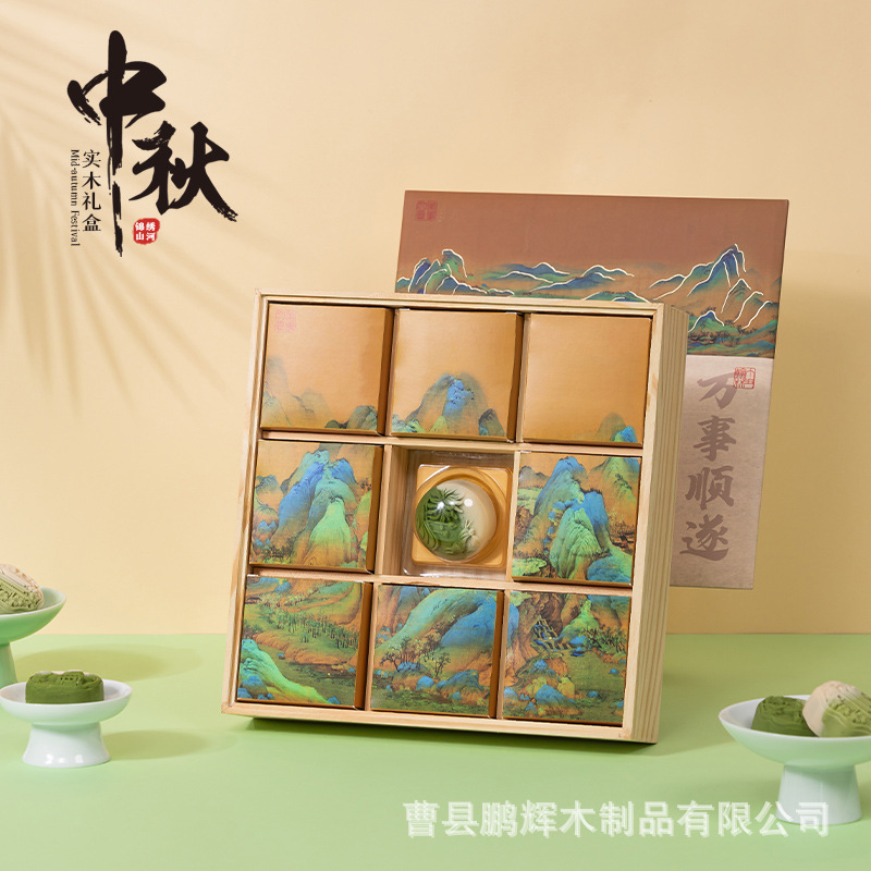 メーカー現物木製中秋月餅礼箱高級感8粒装流心月餅箱二重実木礼箱