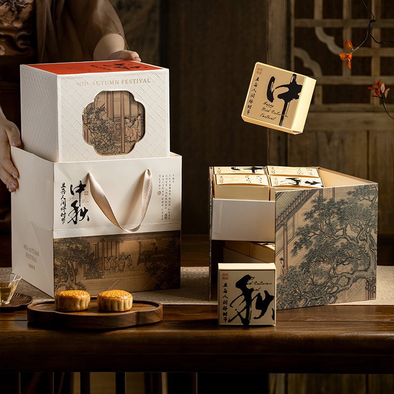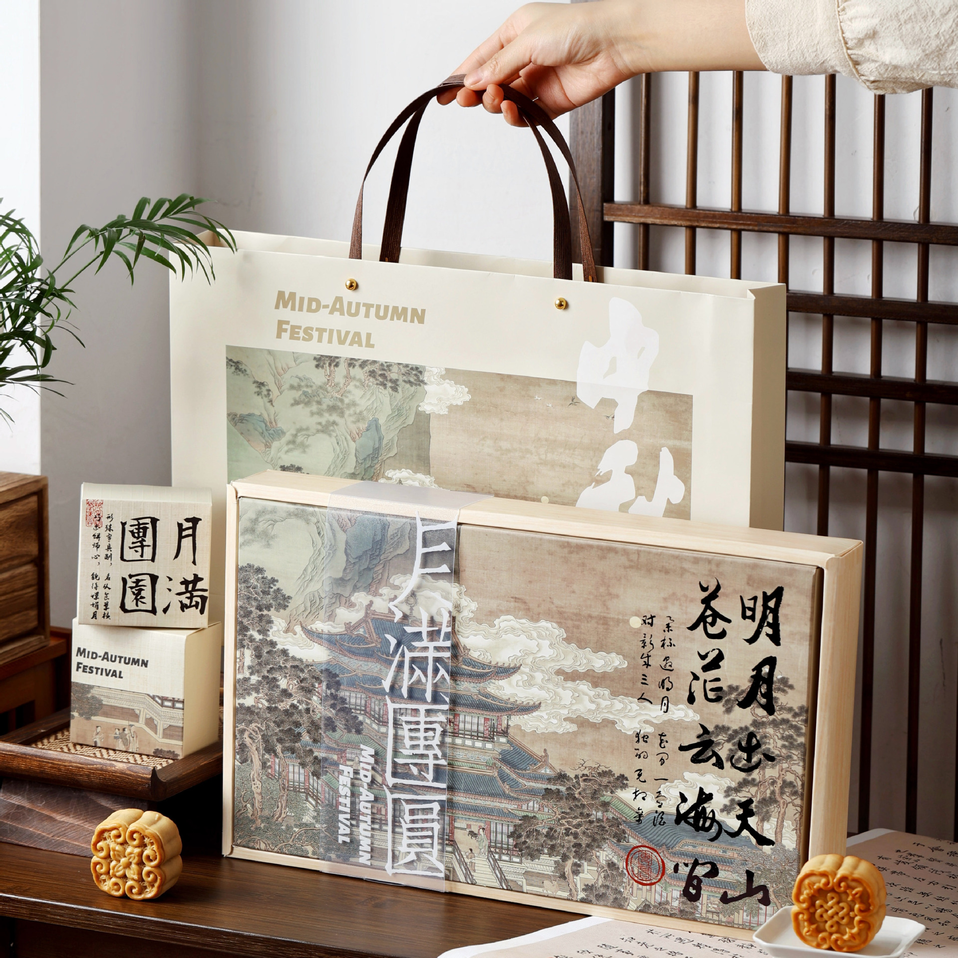 2025 新中秋ギフトボックス月餅包装箱空箱月餅茶組み合わせ中国風壁画ギフトボックス