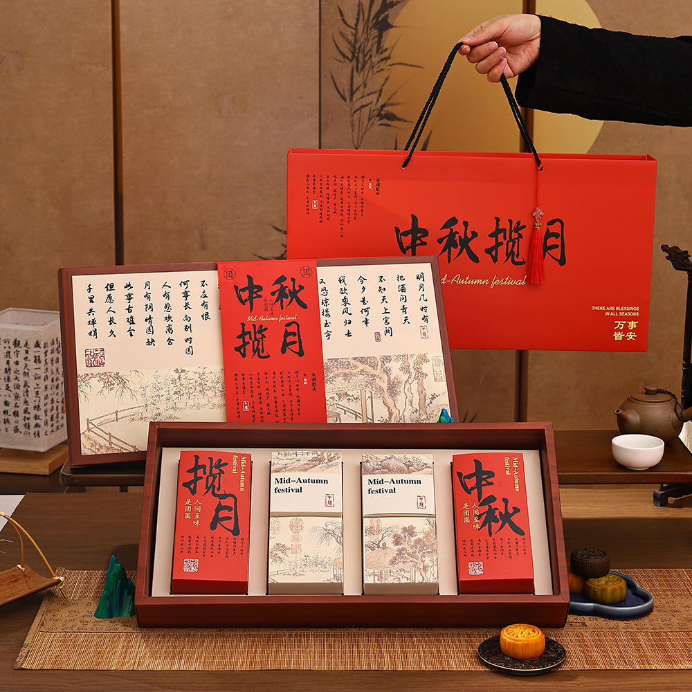 2025 中国風中秋月餅ギフトボックス茶月餅包装箱空箱月餅赤ワイン二層中秋ギフトボックス