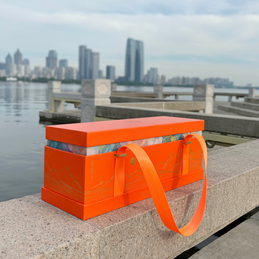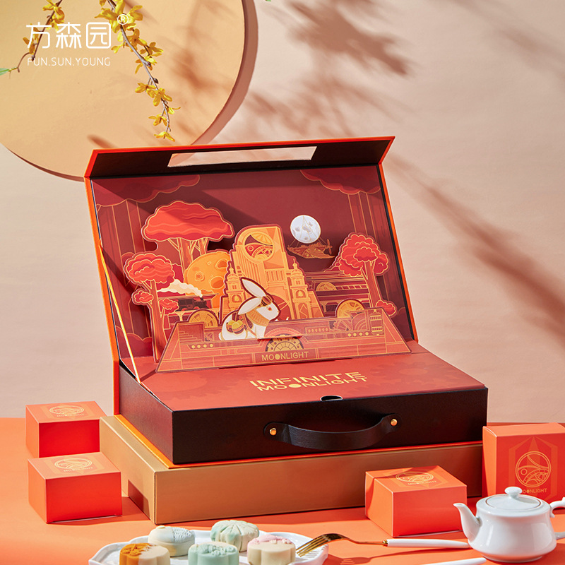 中秋の月餅ギフトボックスオレンジレッドシンプルでエレガントなビジネス液体卵黄ケーキポータブルギフト包装ボックス卸売