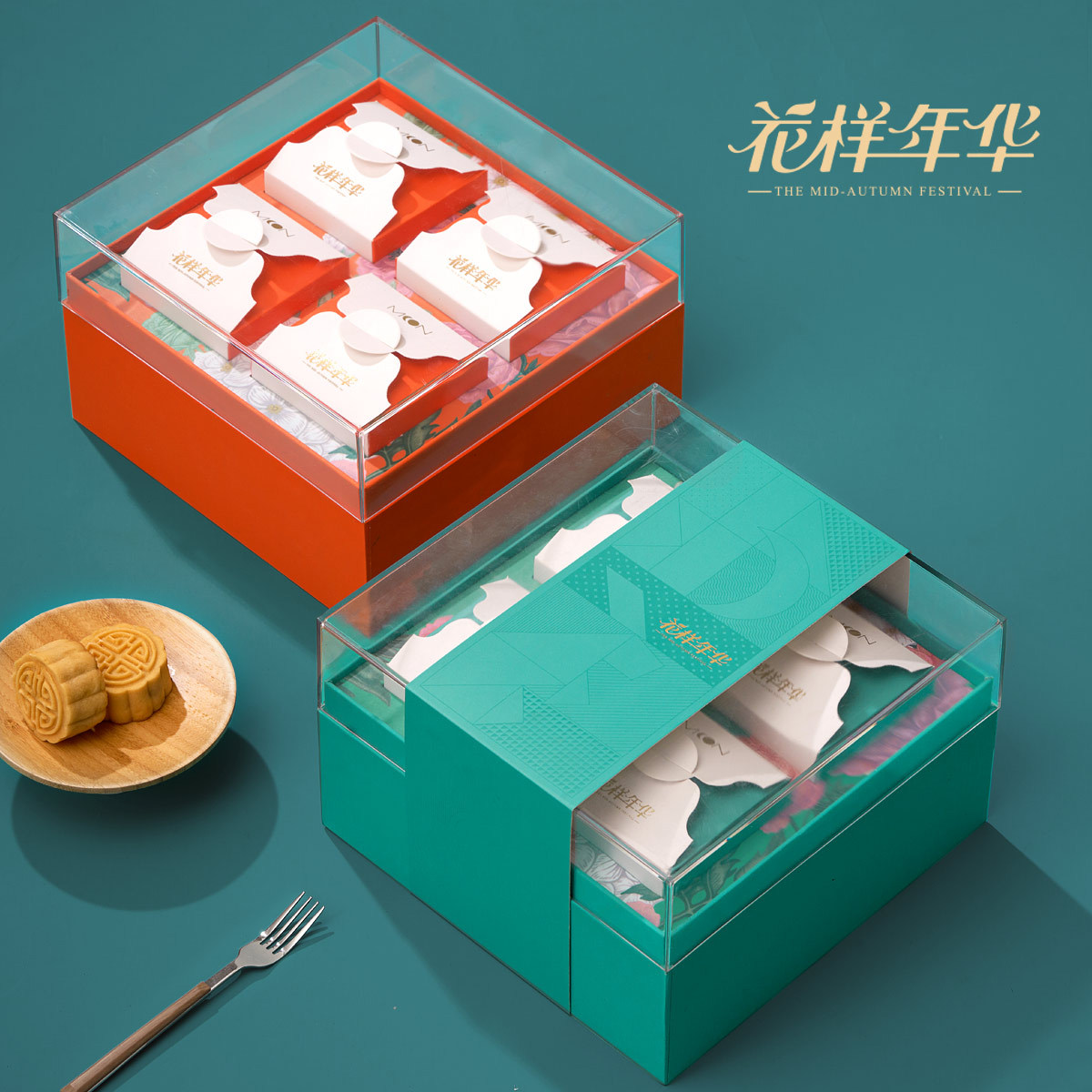 箱境8粒の四角いアクリルプレゼント月餅空箱メーカー直供通版二重中秋ギフトボックス