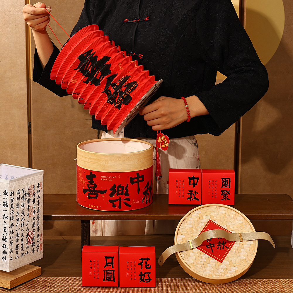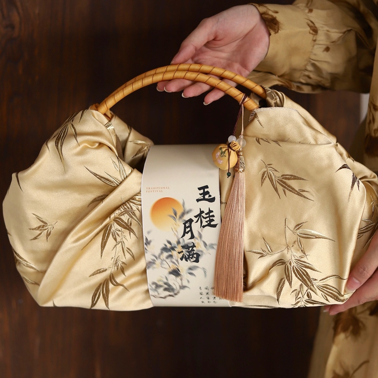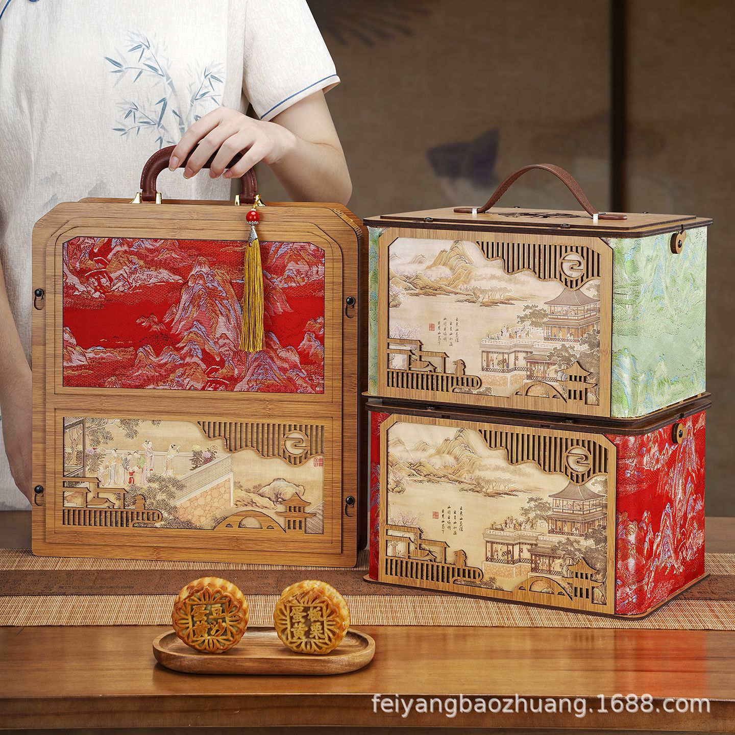 2025 新中秋月餅包装箱広東風氷皮生肉月餅卵黄クリスプお土産ポータブル竹バッグ