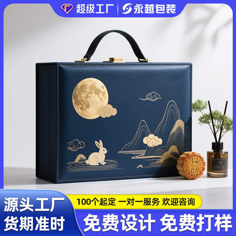 ハイエンド月餅ギフトボックス空箱カスタマイズ中秋節ポータブル包装箱 PU レザーお土産ギフトボックスカスタマイズされた小バッチ