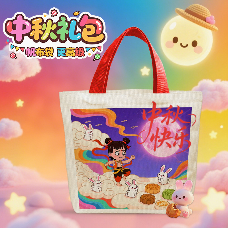 全国トレンド中秋節ギフトキャンバスバッグスポットニッチクリエイティブギフトハンドバッグ大容量ダイナミックキャンバスバッグ