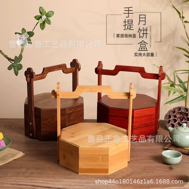 中秋月餅ボックスギフト包装ボックス無垢材ポータブルギフトボックス中国ピクニックデザートフルーツ収納バスケット