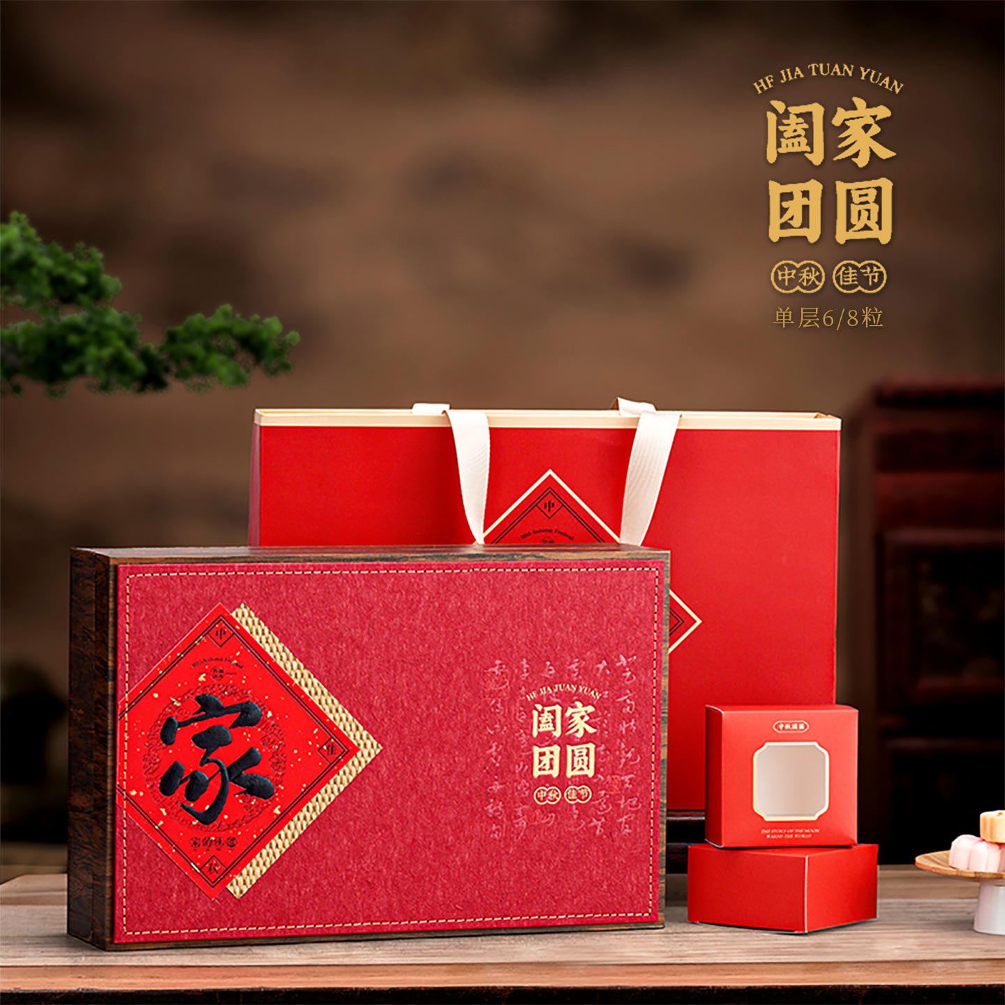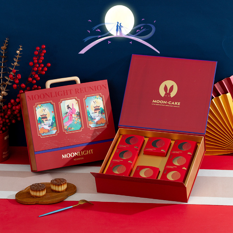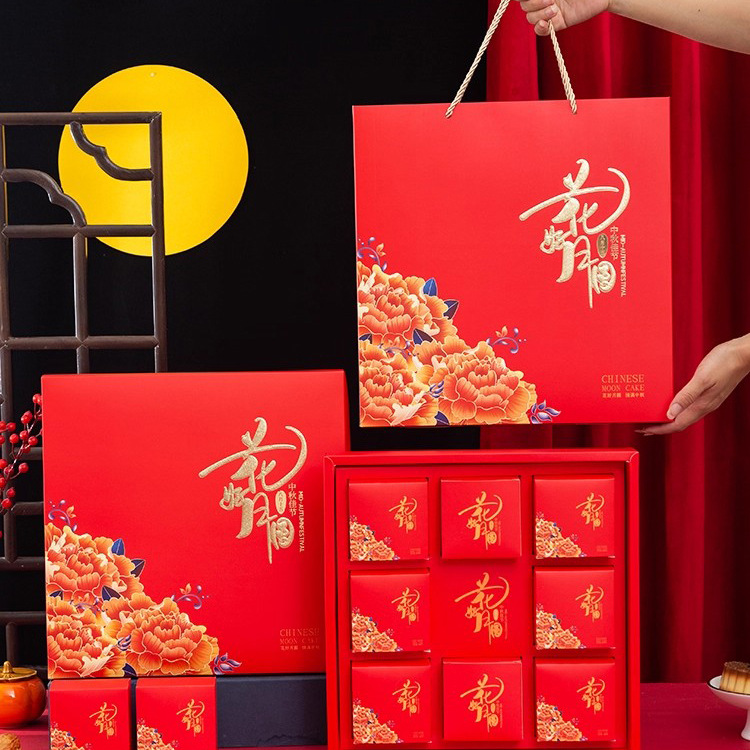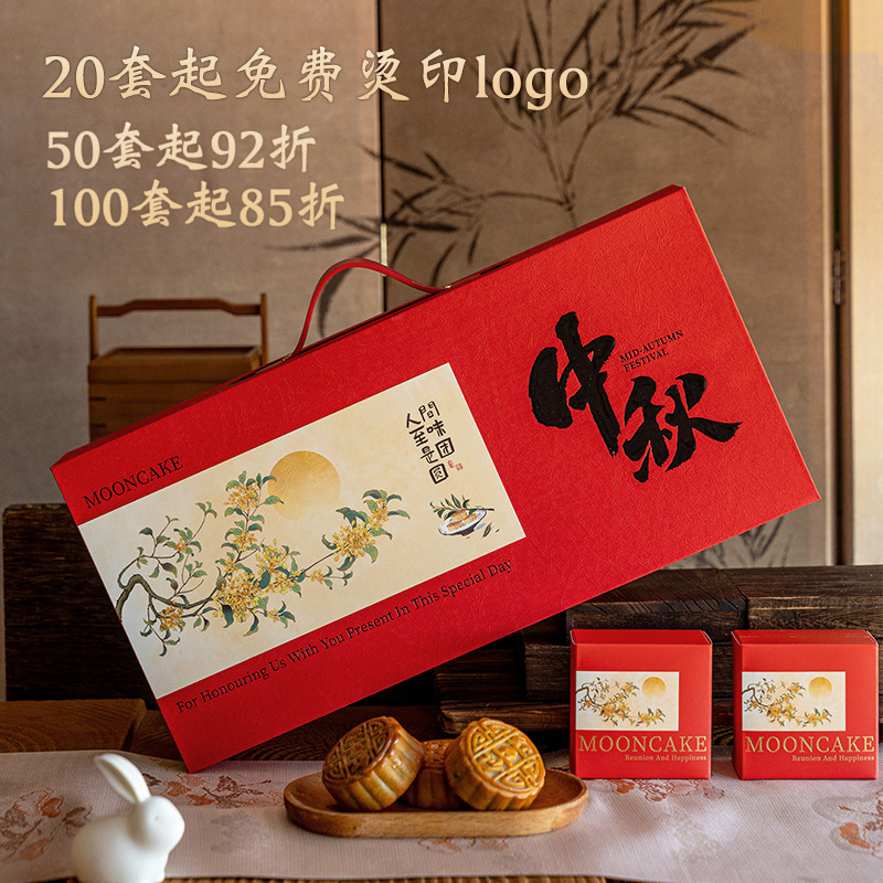 中秋月餅ギフトボックスポータブル包装箱ハイエンドレッドロゴ広東風菓子氷皮空箱流心卵黄ケーキ