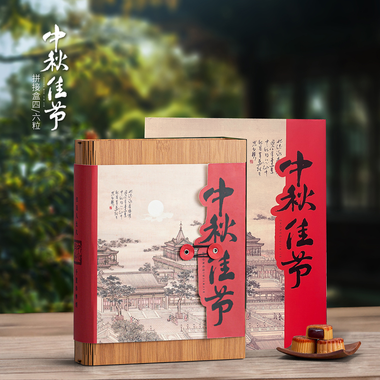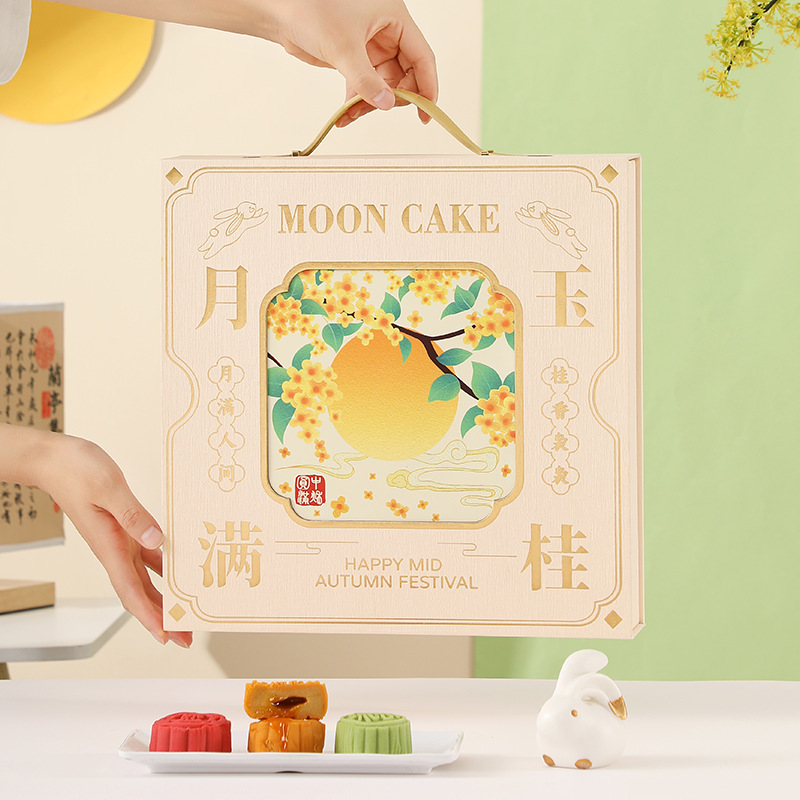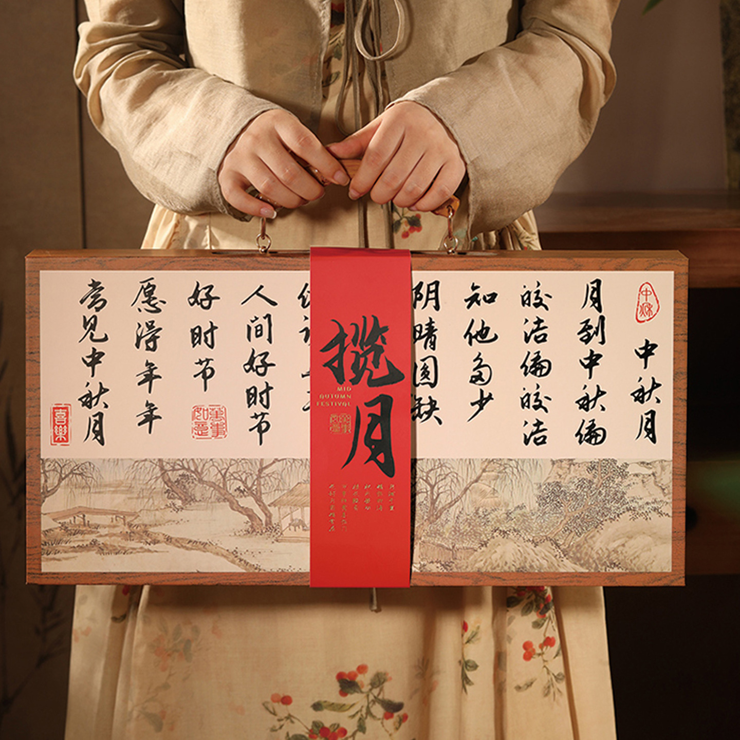 中秋の月餅ギフトボックスの空箱は、高級な中国のトレンドの厚みのある無垢材の卵黄クリスプポータブルクリエイティブホリデーギフトボックスとして使用できます。