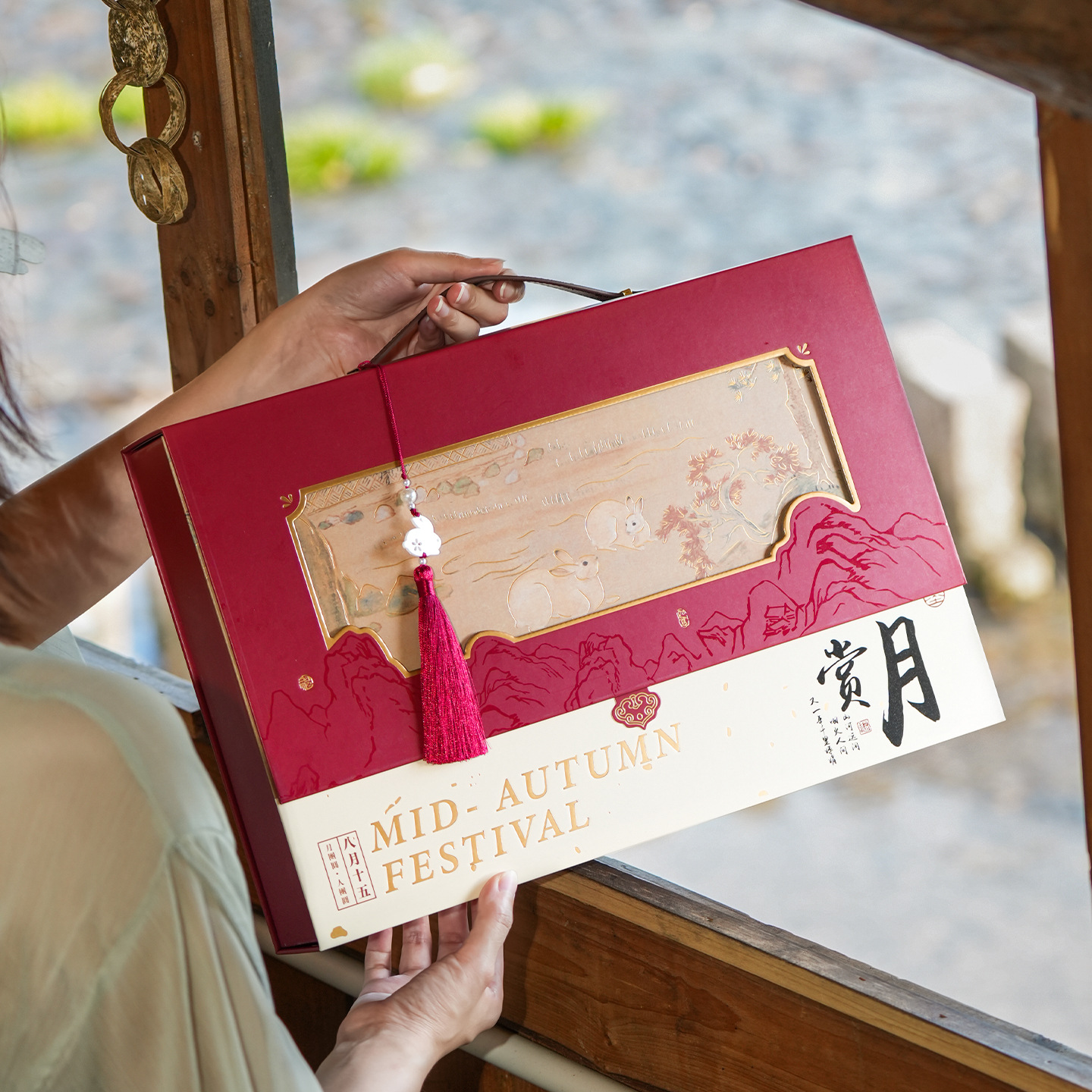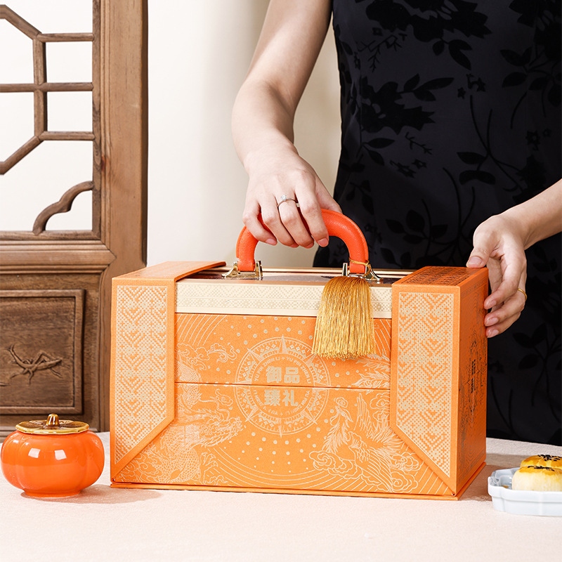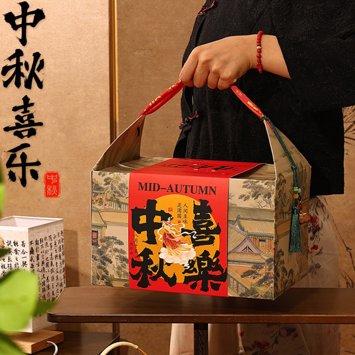 2025中秋節ギフトボックス 月餅ボックス 菓子 記念品 持ち運び可能 クリエイティブな贈り物 新中式 国潮風包装ボックス 在庫あり