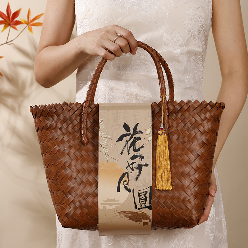 レトロなわら織り中秋節ポータブルバスケット卵黄クリスプ月餅包装箱織りバスケット会社共同購入中秋節ギフトバスケット