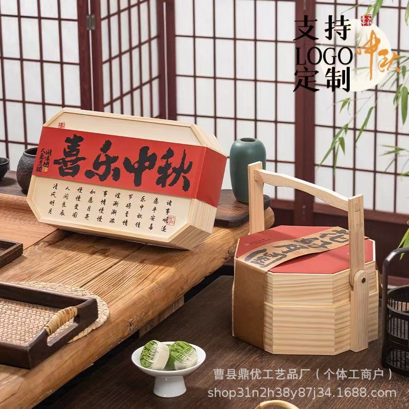 木製スーツケースレトロ新中国風無垢材月餅収納ボックス中国菓子ギフトボックス中秋月餅ボックス