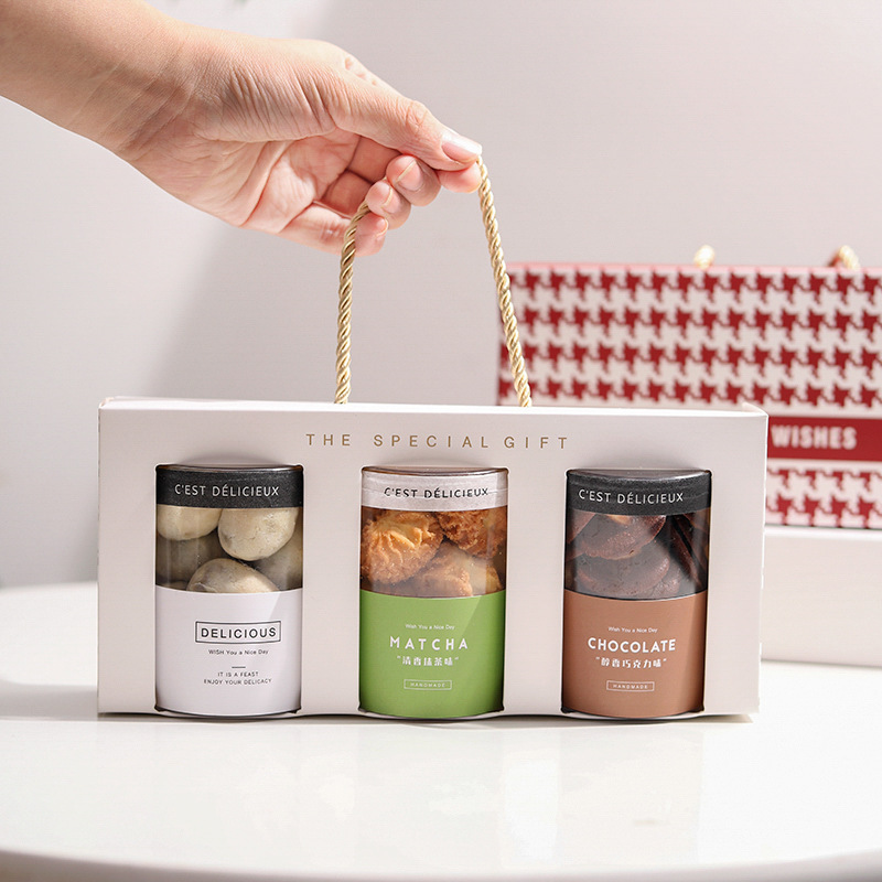 クリスマスクッキー包装箱新年ポータブルキャンディージャー透明スナックバケツギフトボックス3箱空箱