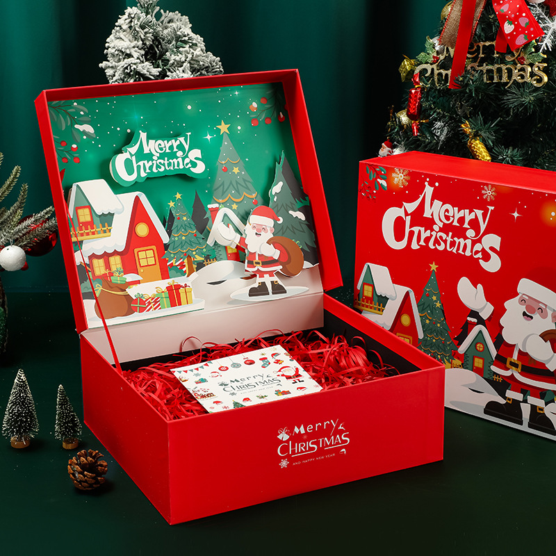 新しいクリスマスギフトボックス、大きな赤い天地蓋包装箱、クリスマスイブのリンゴ箱、スナックギフトボックス、ギフトボックス