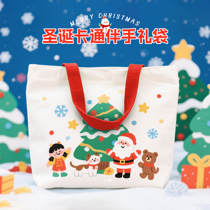 クリスマスギフト包装袋カスタムショッピングバッグポータブル漫画ギフトバッグクリスマスパーティーキャンディキャンバスバッグ