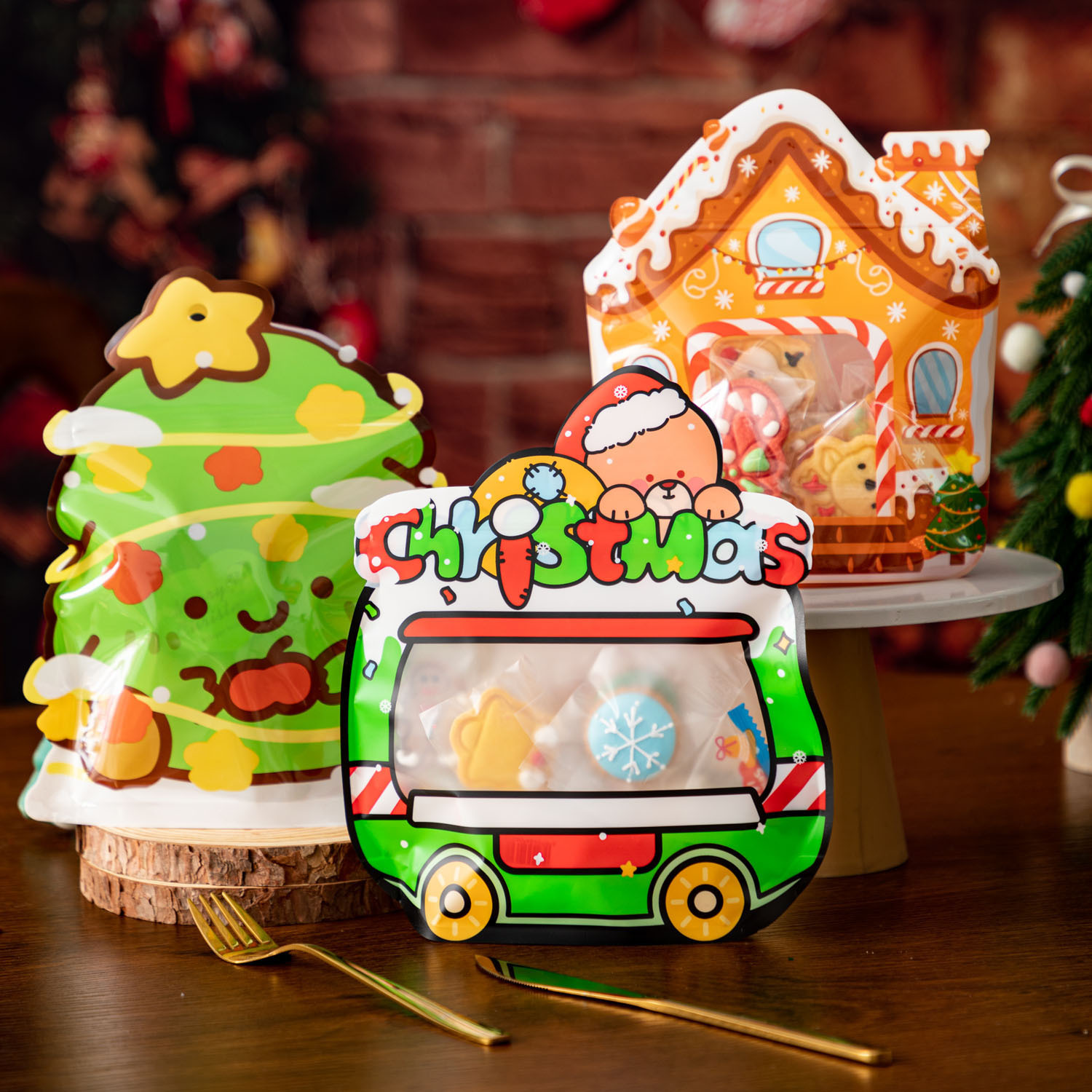 クリスマスアニメサンタクロースヘラジカキャンディークッキーセットカラーボックス包装10pcs/バッグ