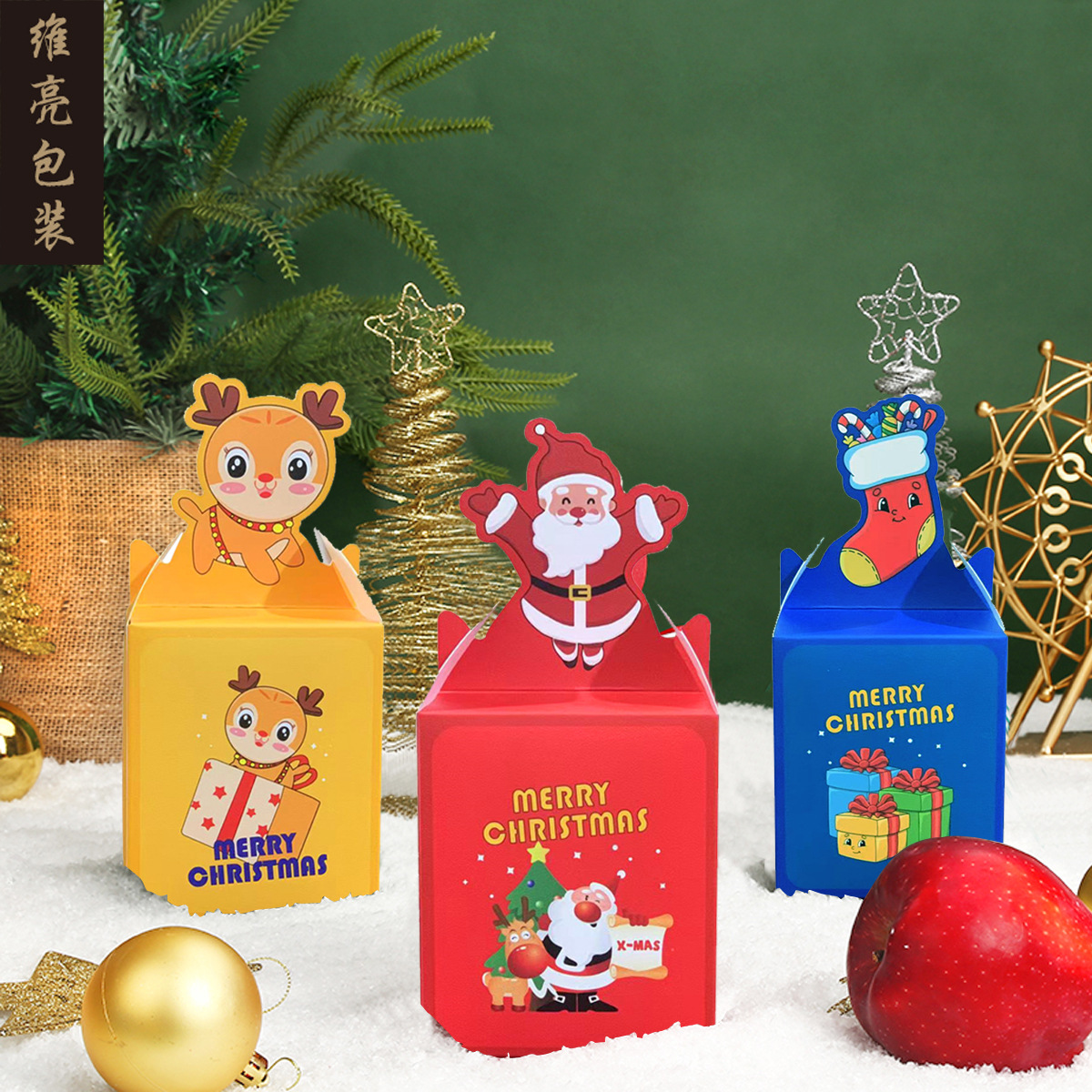 韓国版クリスマスプレゼント包装漫画造形箱現物卸売りカラークリスマスリンゴ色箱キャンディー箱