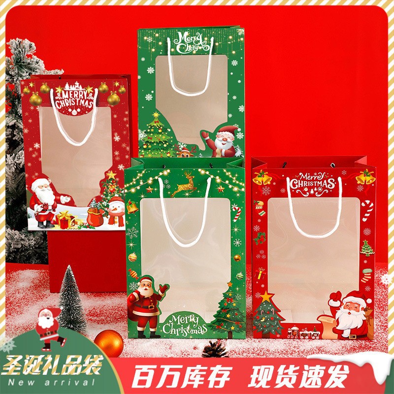 クリスマスギフトバッグ窓開けクリスマスショーウインドー袋プレゼントお返し紙袋平安夜リンゴ包装袋