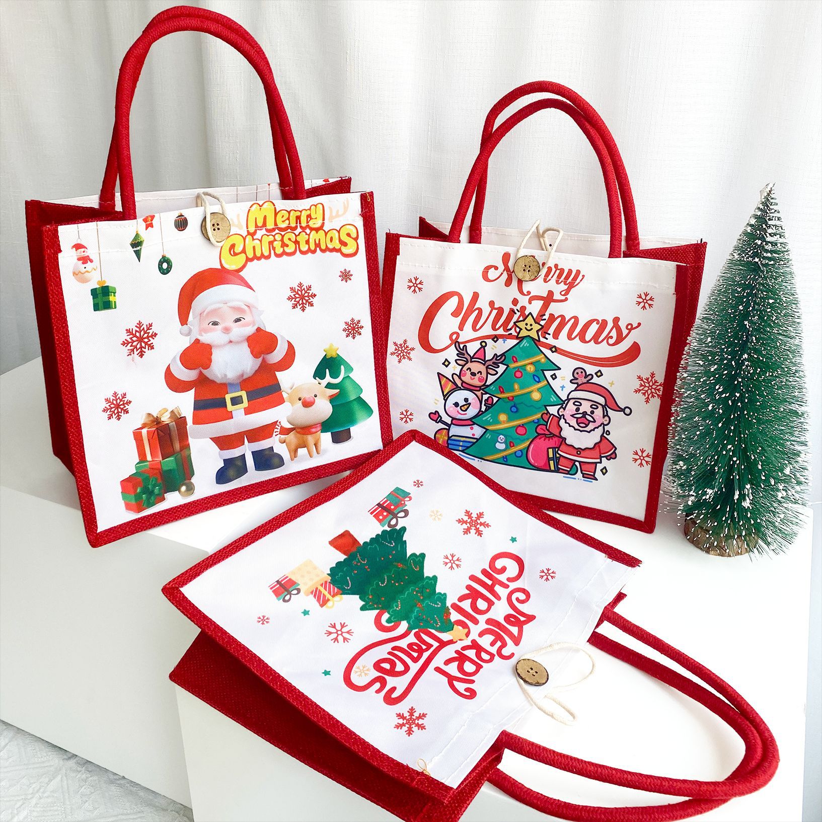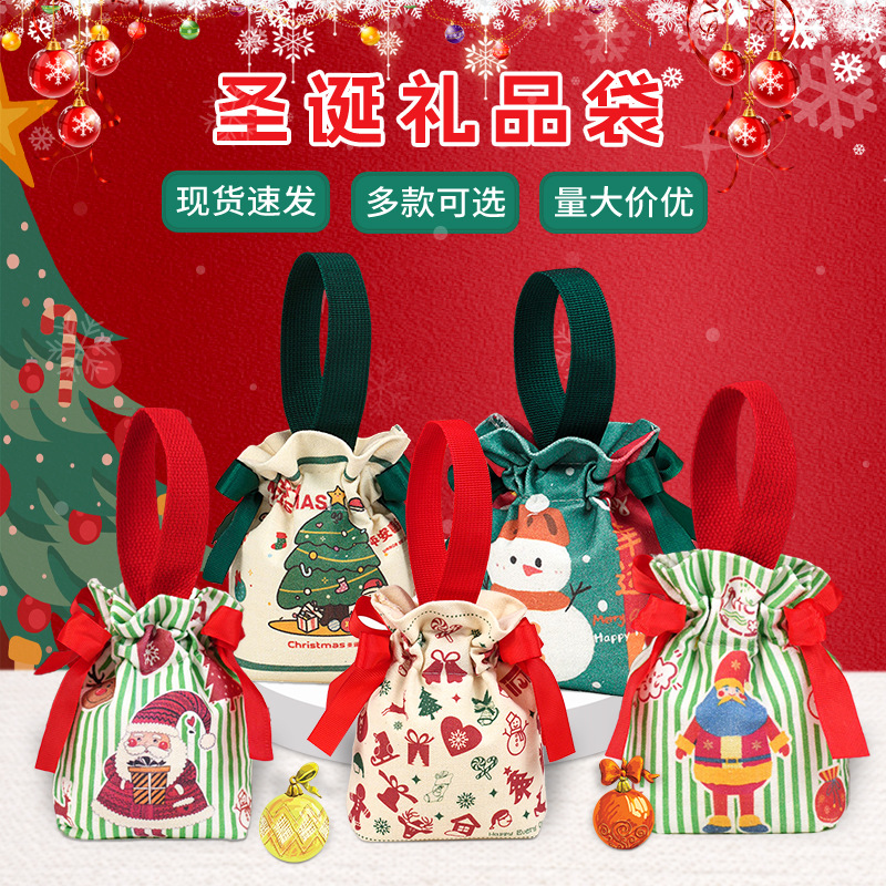 クリスマス小さなキャンバスバッグ巾着ポケットギフト包装袋雪だるま老人クリスマスイブ2024お土産