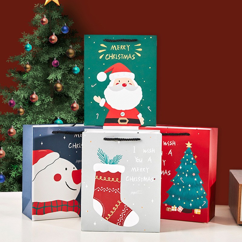 現品のクリスマスの贈り物の袋のクリスマスイブの白い紙の手提げ袋の高級感の漫画の贈り物の袋のメーカーの直接販売の卸売り