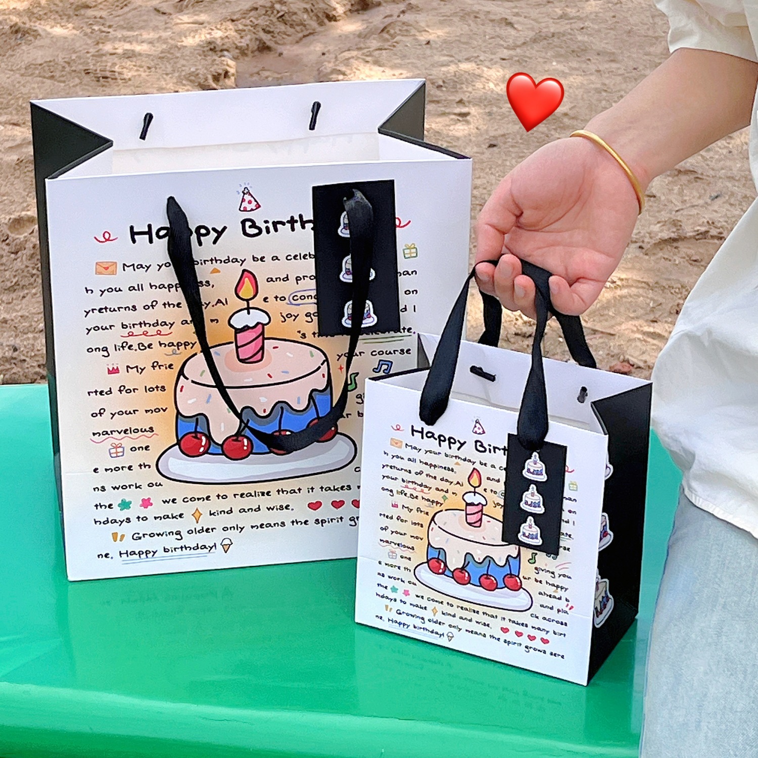 誕生日ケーキギフトバッグ 大きめギフト包装袋 手提げ紙袋 白カード収納袋 カード付きギフトボックス