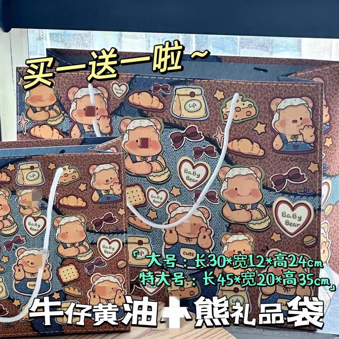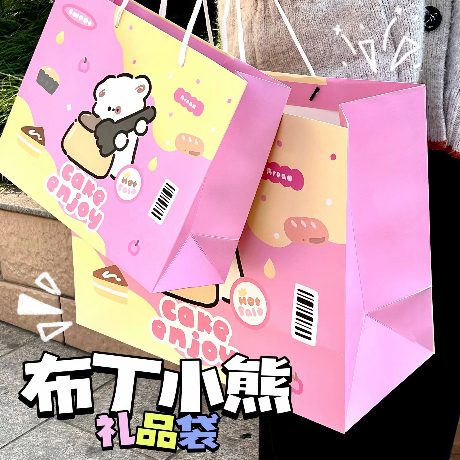 オリジナルプリン熊ギフトバッグ収納袋硬質紙高颜値手提げ袋大プレゼント手袋厚手