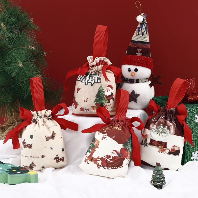 2025年クリスマスイブギフトバッグ 子供用プチギフト包装袋 キャンバス巾着袋 インス風