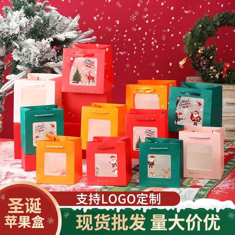 新しいクリスマスプレゼント袋窓開け透明紙袋平安夜手提げ袋リンゴ包装袋クリスマスプレゼント袋