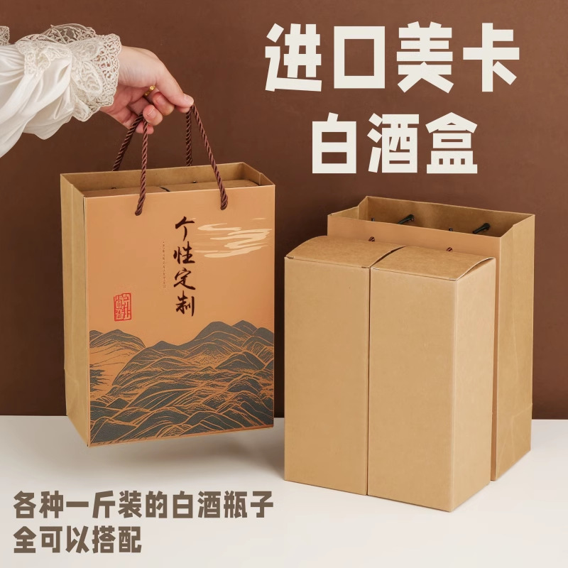 輸入牛革紙無地白紙酒箱ハンドバッグ酒箱特硬紙箱高級美卡酒包装ギフト