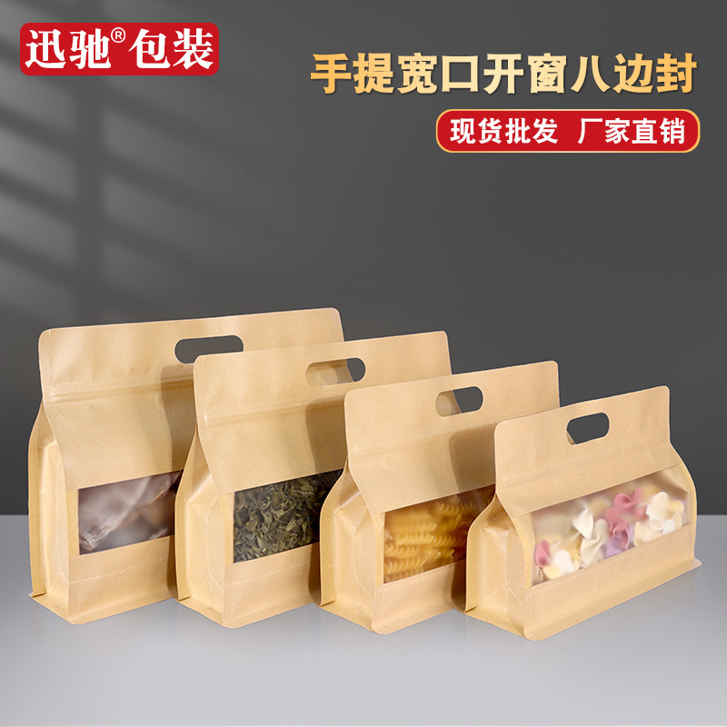 手提げ八辺封自立自封袋稲乾間食茶葉クラフト紙厚食品防湿密封包装袋