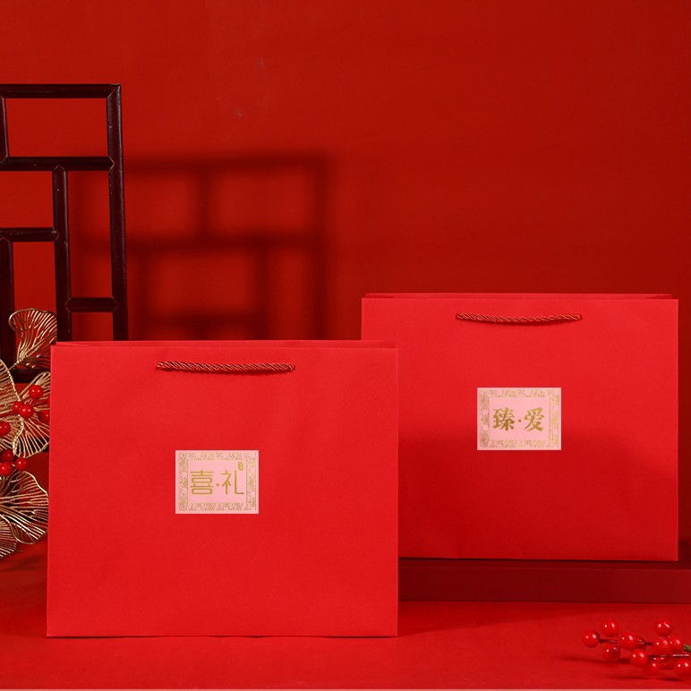 新商品の現物のお祝いのお土産袋の赤い喜字の喜糖の包装袋は金の高級な贈り物の包装袋にアイロンをかけます。