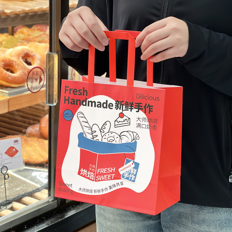 ネット赤焙煎包装袋クラフト紙袋手提げ袋パン出前スイーツケーキ店包装紙袋