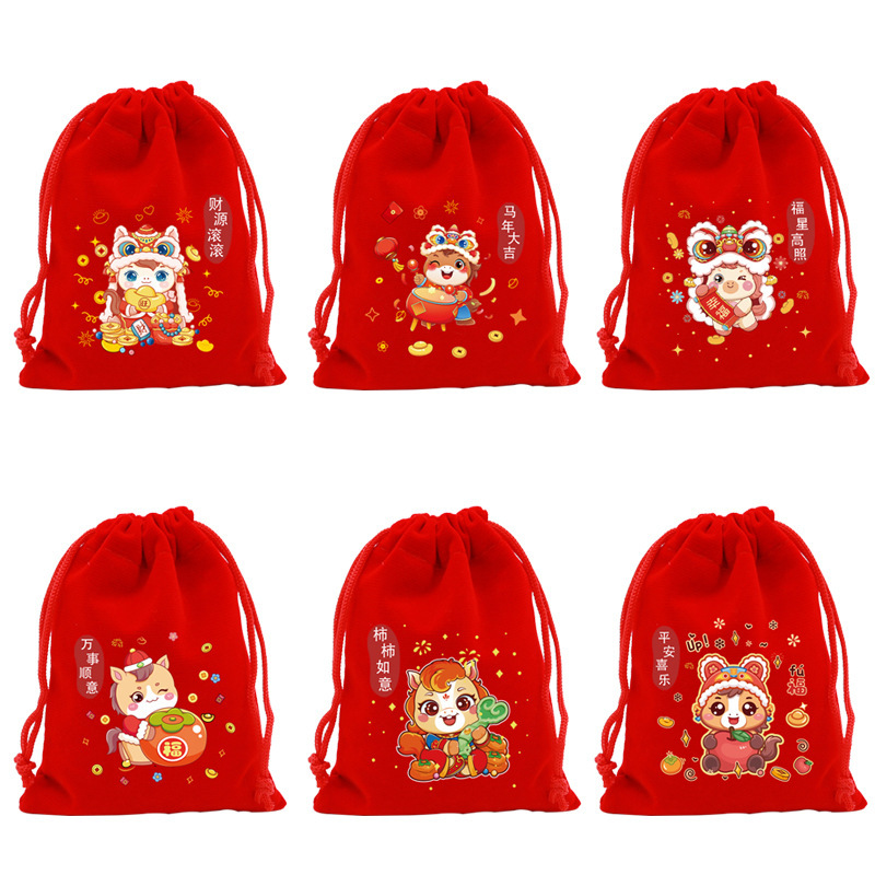 2025蛇年福袋大紅ギフトバッグ間食キャンディー束口袋新年プレゼント引き紐包装袋卸売り